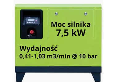 Sprężarka śrubowa 7,5 kW jest dla firm, które mają stały, ale jeszcze niezbyt duży pobór sprężonego powietrza.