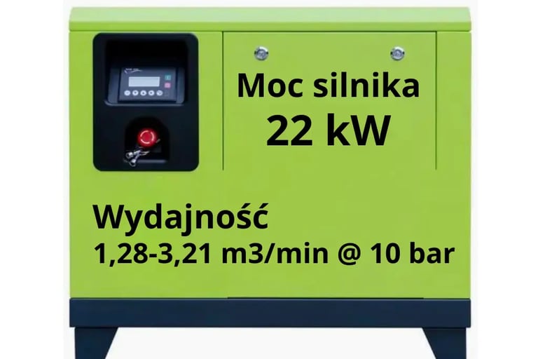 Sprężarka śrubowa 22 kW jest dla firmy, która ma stabilny, codzienny pobór powietrza i potrzebuje niezawodnego źródła dla kilku maszyn jednocześnie.